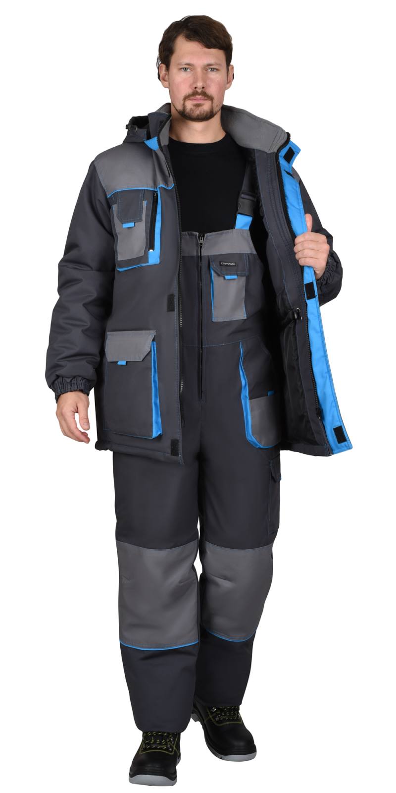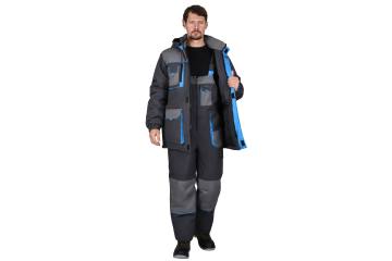 Костюм зимний "ДВИН" (к.удл.+п/к) тк.смесовая, цв.т.сер со ср.сер и голубой отд РФ